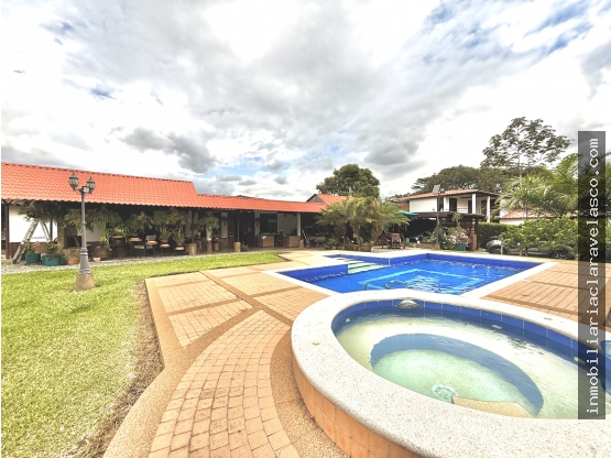 Se vende hermosa casa campestre cerca al aeropuerto, en conjunto cerrado, la casa consta de: 3 habitaciones, 5 baños, cuarto de empleada con baño, cocina integral recien remodelada con lavavajillas, estudio con baño, una terraza muy amplia para disfrutar de las tardes y de la piscina, BBQ, 2 bodegas, zona de ropas, parqueadero para 2 carros, piscina, jacuzzi, energia solar para exteriores, vigilancia las 24 horas. la casa tiene 400 M2 construidos sobre un lote de 1.560M2.