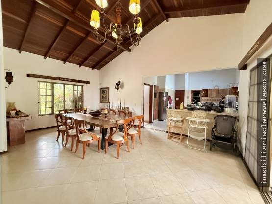 Se vende casa campestre en conjunto cerrado cercaal aeropuerto, la casa consta de: 5 habitaciones cadauna con su baño, saa comedor, cocina integral con isla, estudio, cuarto de empleada con baño, 2 parqueaderos, estadero, closet de linos, 4 bodegas, alacena , jacuzzi grande para 15 personas, zon de ropas. La casa tiene un àrea de 380m2 y està construida sobre un lote de 1.500 M2. El conjunto cuenta con vigilancia las 24 horas.